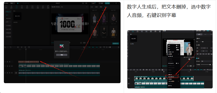 4.👆剪映有一个数字人功能,如果需要添加数字人,从朗读文本就要换成数字人